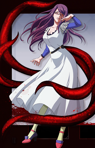 拥有紫色长发,身材高挑,长相可爱,外表是个优雅知性的女性,其实是有着巨大贪欲的食尸鬼,被CCG称为大喰,绰号“暴食者”。在袭击金木研时不幸被钢铁砸中,一部分器官被移植到前者身体里,是导致金木研成为独眼喰种的最主要原因。