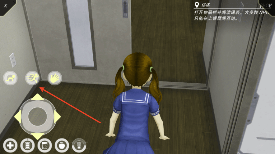5、进入游戏,左边轮盘可以设置方向、爬行、奔跑、鼓掌等操作