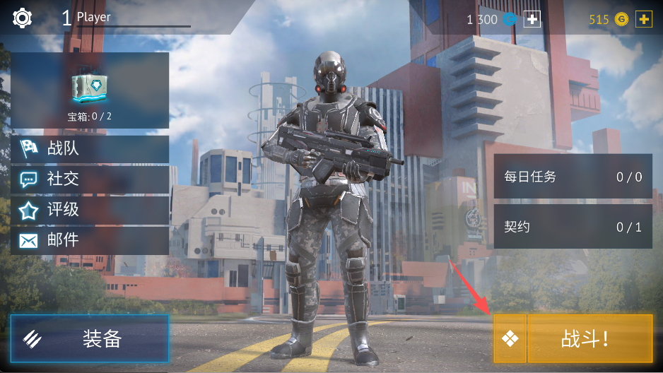 1、在主界面点击战斗旁边的按钮,进入游戏模式选择页。