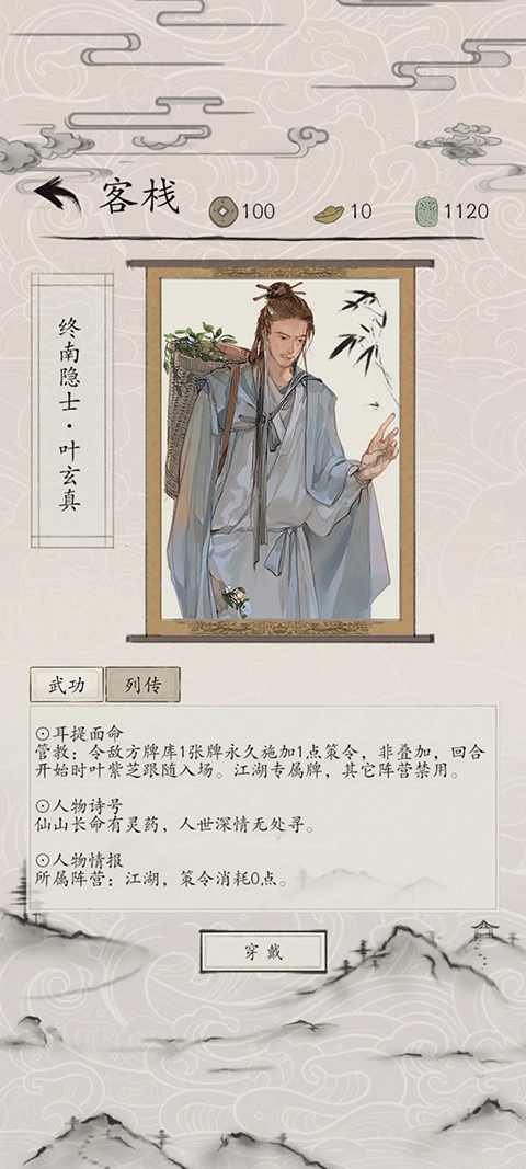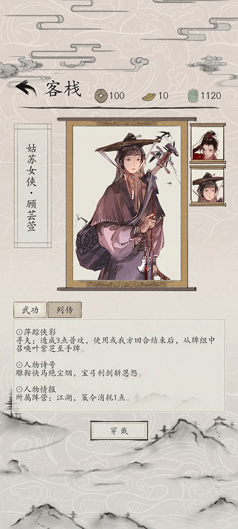 3、技能卡:包含各类武功秘籍与特殊技法,在战斗过程中打出即可触发即时效果,使用时需消耗行动点数。
