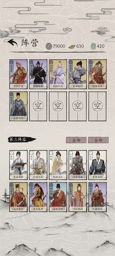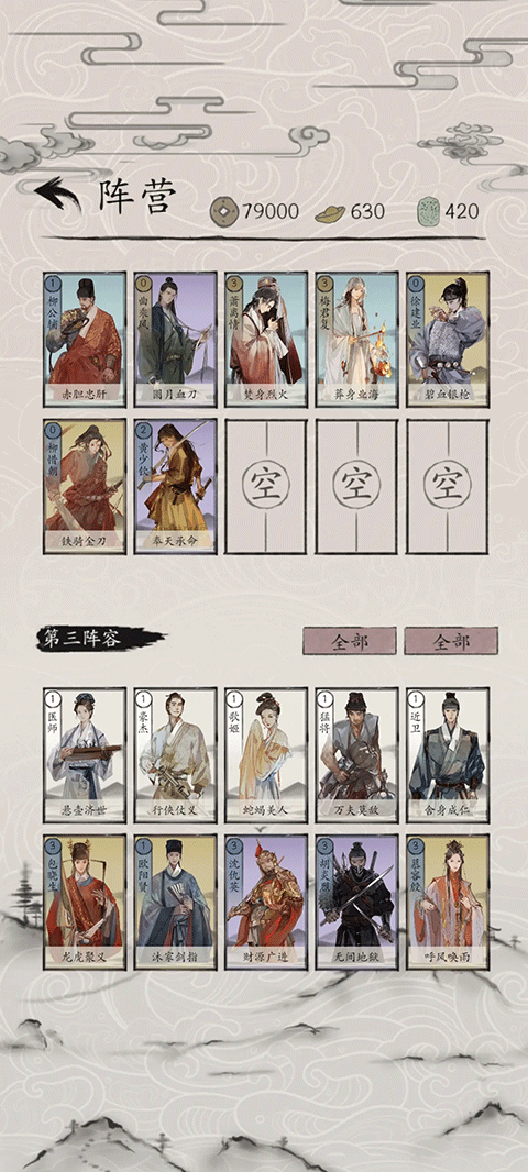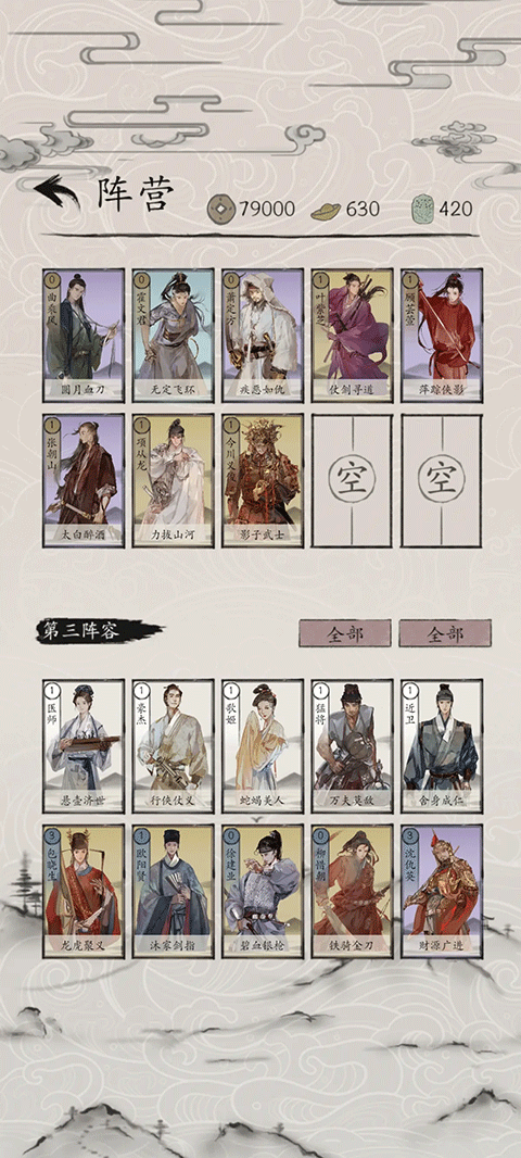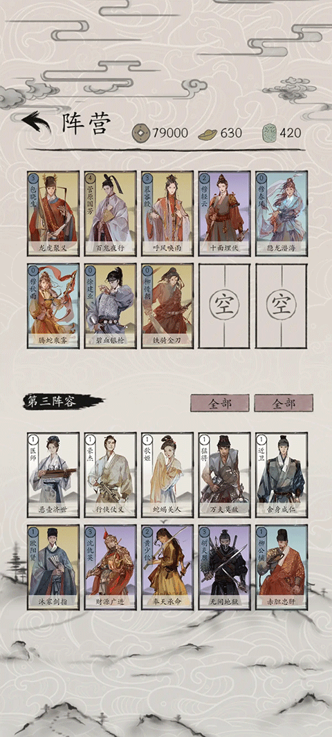 6、阵法卡:能够改变战场的环境与规则,对双方英雄的站位和技能效果产生影响,使用时需具备策略性。