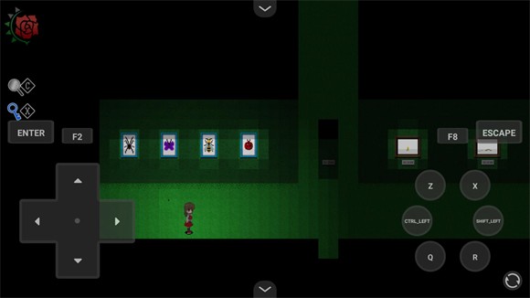 2、调查完蓝色液体后回到1楼大厅,顺着蓝色脚印跳进画中。进入后走红画一侧,走到底然后拿走玫瑰推开桌子,拿到玫瑰后玩家正式拥有血量,玫瑰的数量就代表你的血量。然后进旁边的房间拿走蓝色钥匙,拿到钥匙后去往蓝画一侧,使用钥匙进入房间。