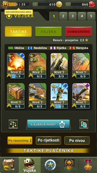 每套牌中玩家最多可以拥有 8 个战术和 4 个部队。要装备一张卡牌,你必须从“陆军”选项卡中的“可用战术”或“预备部队”部分中选择它,然后按“使用”并选择一张你想要替换的卡牌,或者如果你碰巧有的话,选择你牌组中的空白区域一。要了解每个级别的最佳卡组是什么,请单击此处。