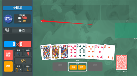 2、点击开始游戏,你的目标是赚取筹码以击败地方的盲注,这是小盲注。