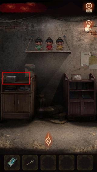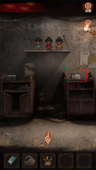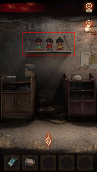 4、返回杂物间,根据照片的提示,调整3个布偶,得到【钥匙】。