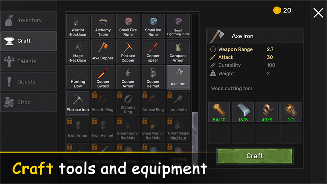 3、岛屿上都是未知的东西,经营中努力活下去,保持生命的提高,掌握无数的技能和才能
