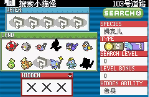 在如下页面,点击R键(对应VBA模拟器的S键),就可以依次查看努力值和个体值。在本版本中可以通过对宝可梦使用IV单项提升剂和IV多项提升剂将宝可梦的个体值提升到满级。