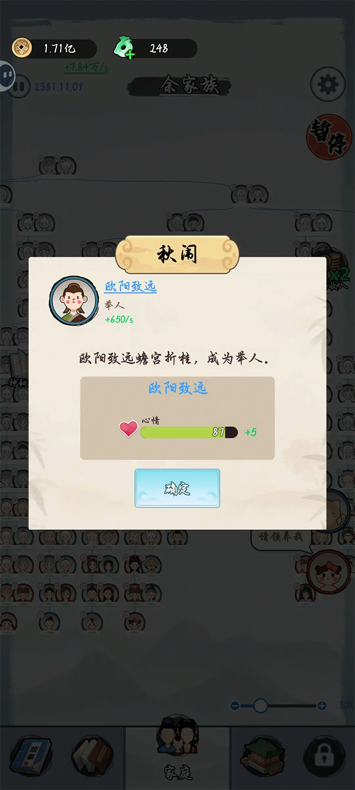 3、家庭成员到达一定数量,可以解锁更多的功能,行业,故事。