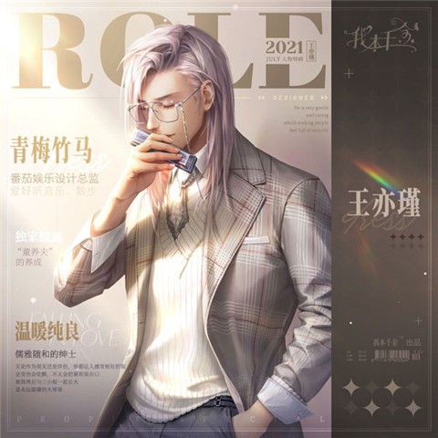 王亦瑾是番茄集团的设计总监。他温柔善良,待人亲和,通常不会将喜欢说出来,作为典型的暖男性格,他也会经常吃醋、受伤,但更喜欢默默地对花小蛮好。无论是作为朋友还是伴侣,他永远是相处最舒服的那个人。