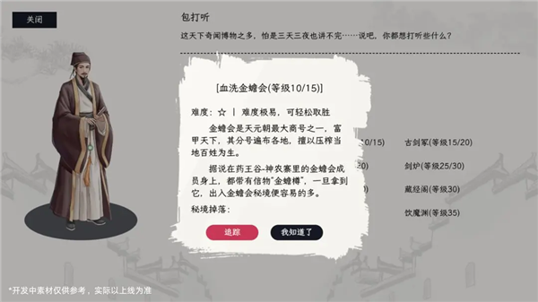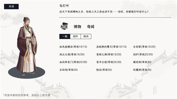 消耗「信物」找“包打听”开启,信物需击败特定怪物掉落。(也有可能是特定的侠义事件获取)