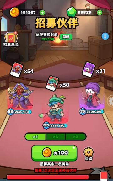 3. 抽取技巧:解锁“三倍抽取”后,仅在“红色保底”阶段多刷新界面——需刷出2个有用伙伴(神话/传说品质)后再三倍抽取,非红色品质伙伴不要用钻石抽取。