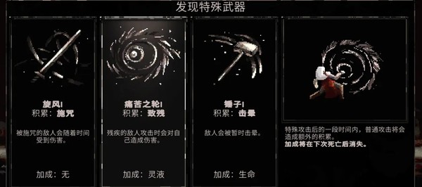 当玩家造成击杀的时候就会一直积累怨念,每个等级都会给予玩家随机三选一的加成