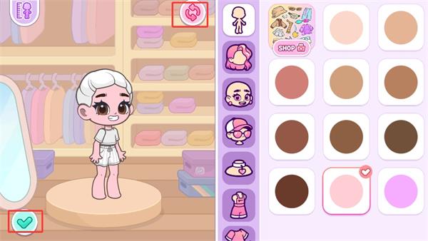 4.点击上方的圆圈图标可以随机创建角色,当然也可以按照自己的喜好来创建,完成后点击左下角的勾就创建完成了