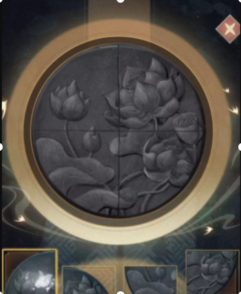 第15节:通过暗道密室进入金银财宝库,中间有一个需要拼图开锁的关卡,4个碎片如图,可以很清楚看出碎片的花纹与弧度,将其拖进去相应的盘子即可开锁。