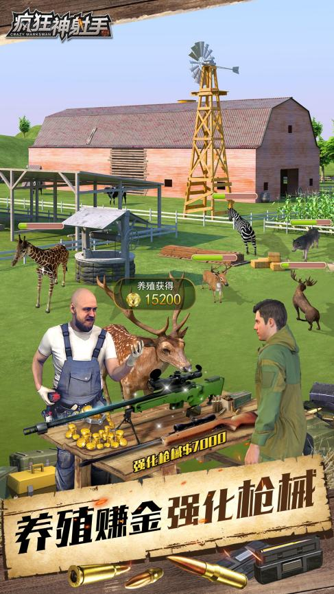 5、养殖赚金,强化枪械狩猎闲暇时刻,开启养殖惬意生活,售卖野兽,赚取丰厚金币,强化枪械,轻松征服猎场。踏入狩猎战场,扣动扳机,让荒野铭记你的名字!