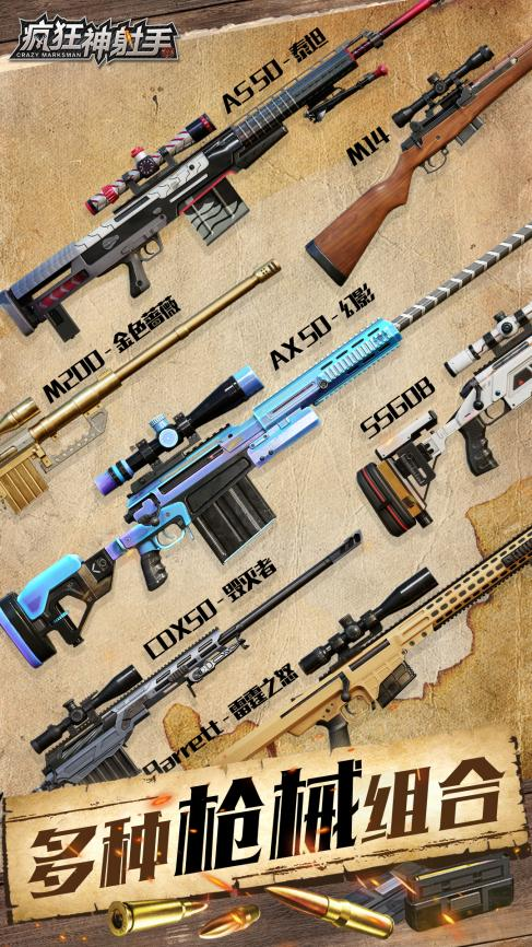 深入荒野,多种枪械组合,稀有子弹搭配,自由配件组装,进阶精英神射手。