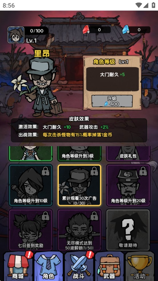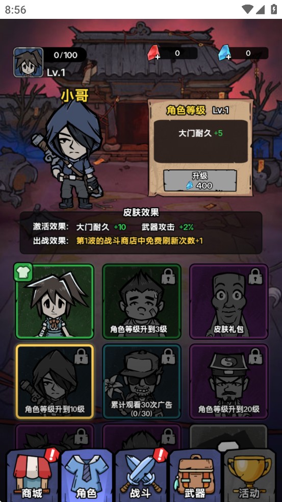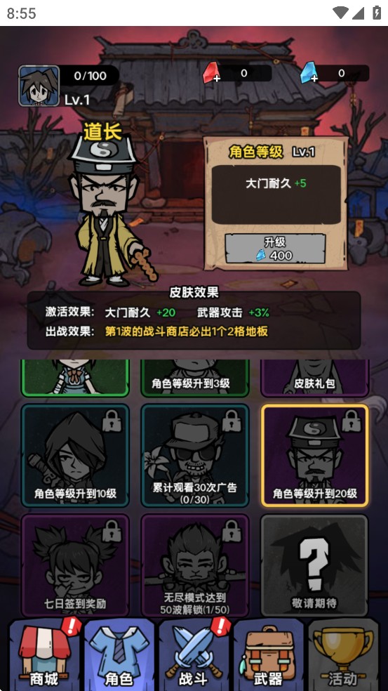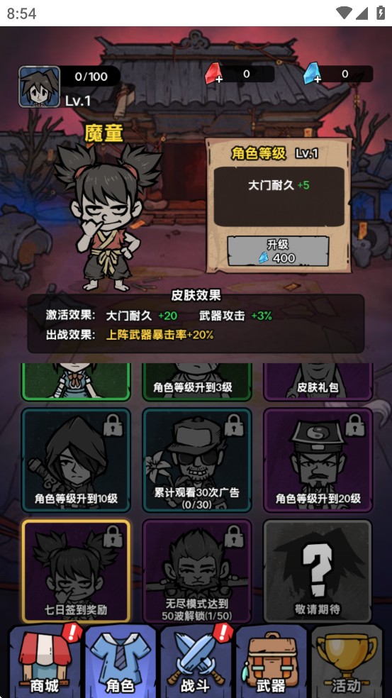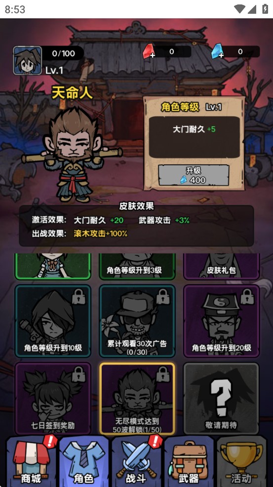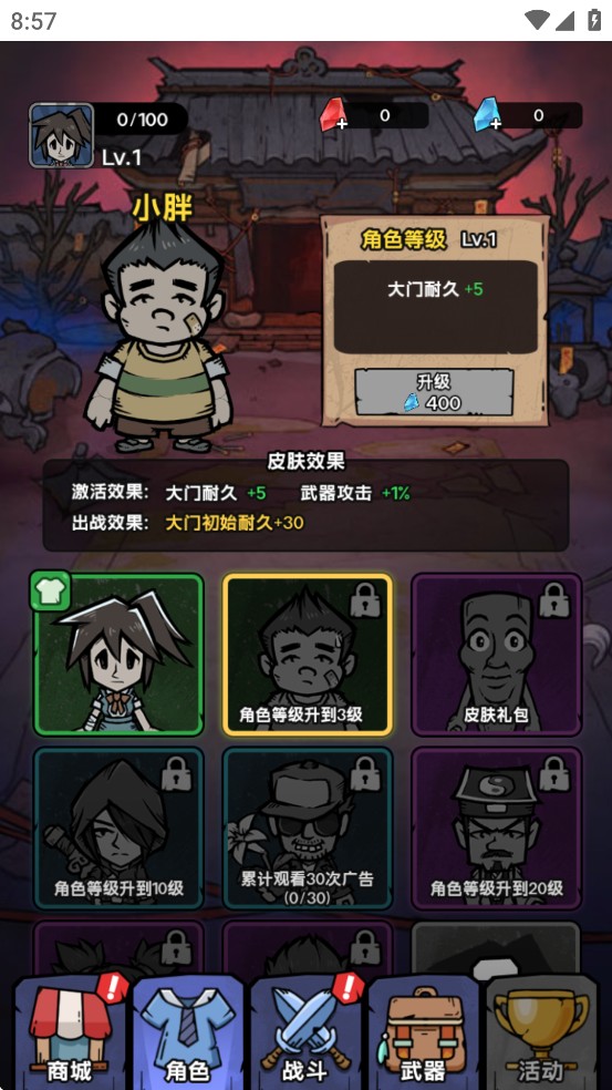 出战效果:大门初始耐久+30