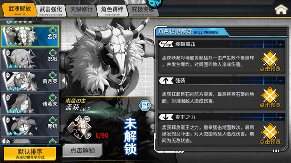 南中地区少数民族的首领,从小天生神力,善使一柄链斧,成年后凭借个人实力统一了南蛮诸多部落,成为南蛮之主。