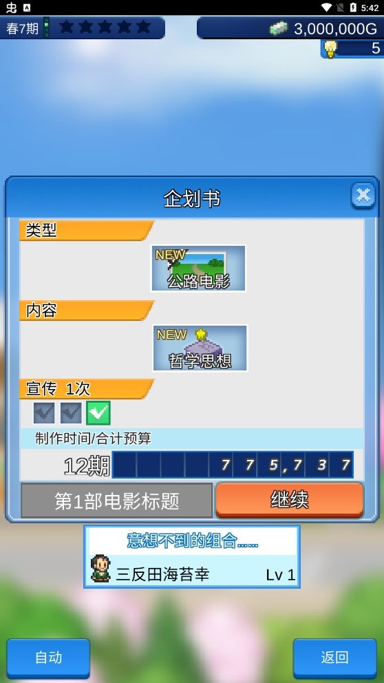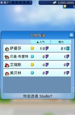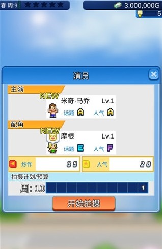 5、计划完成后,就需要挑选演员了,选择话题和人气更高的演员能为电影带来更高的收益;