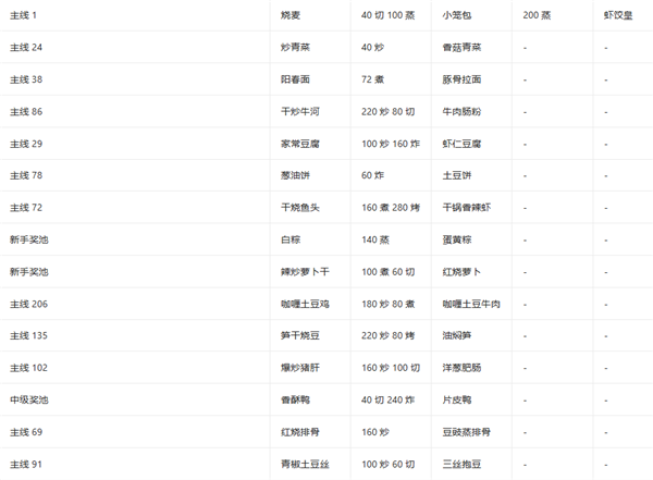 2、烧菜技法有六种,每个厨师有四个烧菜技法和两个采集技能。