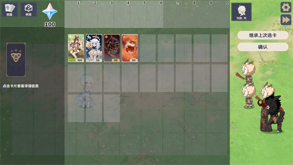 3、进入关卡后需要选择使用的角色卡牌和角色元素属性,选好后点击确认开始闯关。