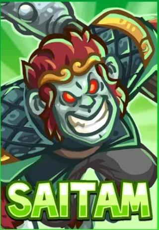 十三、神猴 塞塔姆 Saitam:英雄本身脆皮,普攻伤害不如沙王,但技能伤害不错,神怒是神技能,全屏增加65%伤害,搭配图腾非常恐怖。