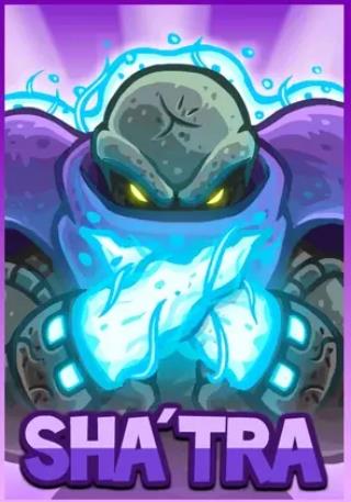 九、虚空猎手 沙塔 (Sha’tra):一个热门英雄,主要是因为他那恐怖的秒杀技能(劫持)。大法师比沙塔弱了很多,他的普攻是真伤,扔回旋镖仿照一代钢锯,然后是死亡自爆,没什么用,不会有人让英雄送死,而且他复活时间还比较长,无人机伤害还行。