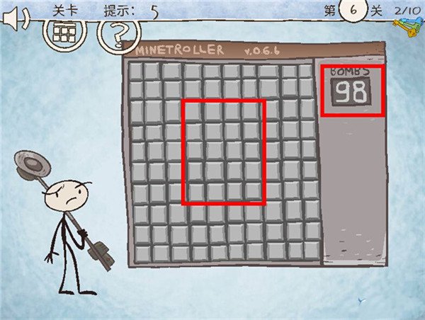 6、第六关: 这关是扫地雷,98个地雷 显然是才一个中一个不能过关。这个数字可以改的,把它改成00 随便踩个地雷就能过关啦。