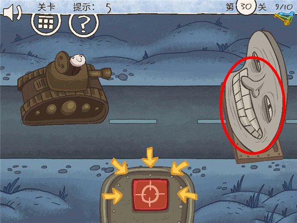 1、第一关:点击图片上的箭头,出来个坏笑的小人,就可以过关啦(不是按泡泡哦)。