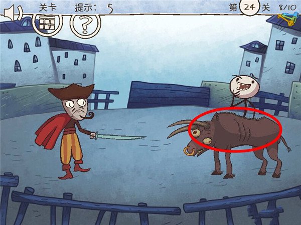 24、第二十四关:点一下牛背,牛是小人拌的,就可以过关啦。