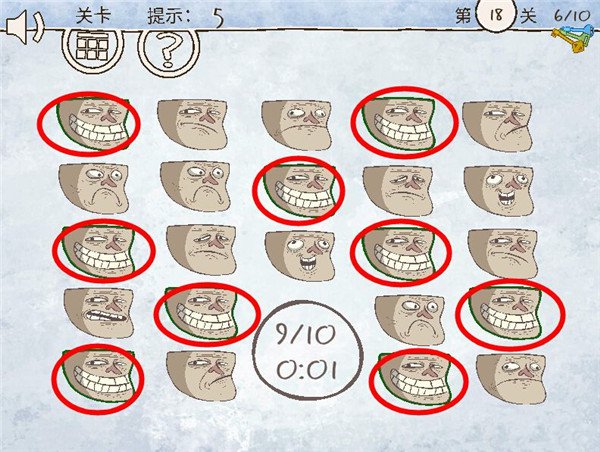18、第十八关:找10个头。这关说实话我玩了好久,终于明白了里面的真谛。页面有9个头,等到时间走完了,会出现一个页面 再点一下小页面的头,就可以过关啦。