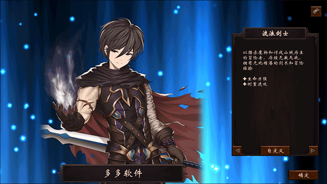 2、在人物职业界面,选择好你的职业、输入昵称后找到并点击“确定”的功能选项;