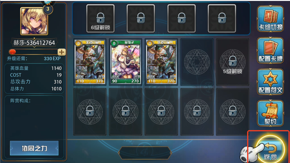 5、然后我们点击返回就能推出配置卡牌界面了。