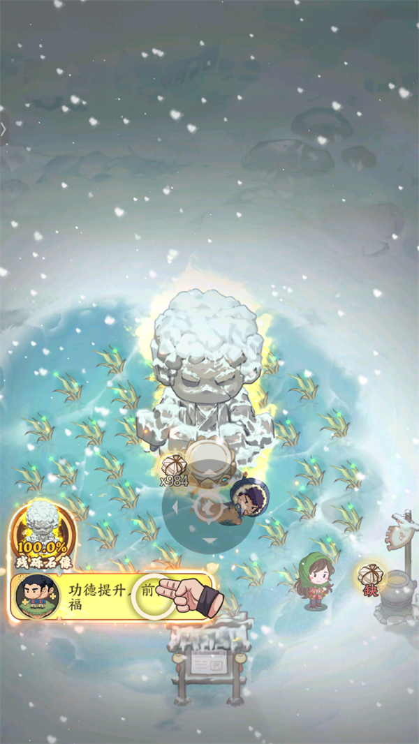 道馆经营与修复,修复功德金莲、金身雕像等建筑解锁新功能,开设义诊摊位、接待香客祈福,构建“采集-生产-经营”的完整流水线。