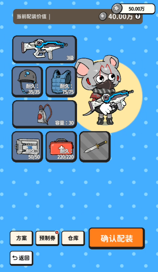 2、为角色挑选合适的装备,如头盔、药包、武器等等,做好万全准备开始挑战。