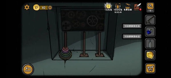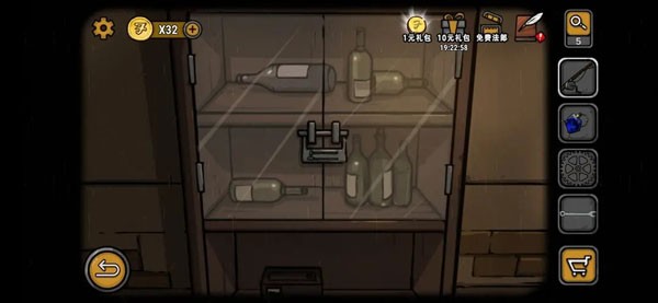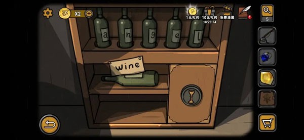 来到另一边的酒柜,将酒瓶摆放成angel天使的字样,在放入半个圣杯。又在边上的天使雕像托盘处,将宝石按童谣的顺序摆入(红黄绿蓝),一间密室便打了开来,目标的白兰地即刻入手