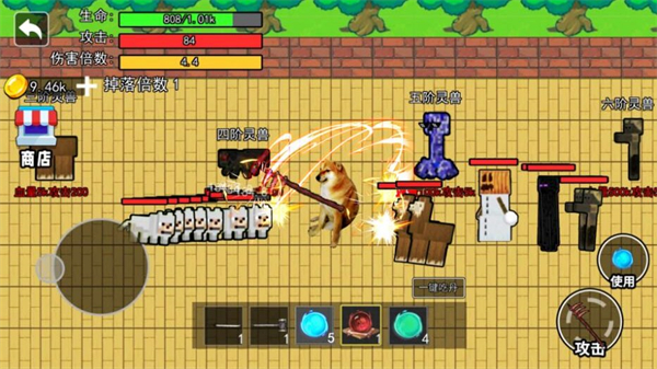 3、游戏的整体玩法就是一目了然,我们可以通过吃丹提升境界,可以与各种灵兽进行战斗。