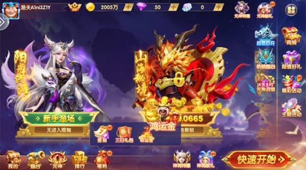 【深度养成系统】 支持武器锻造、神秘抽奖、每日低保等玩法,万倍捕鱼刺激不断,金币奖励拿到手软。
