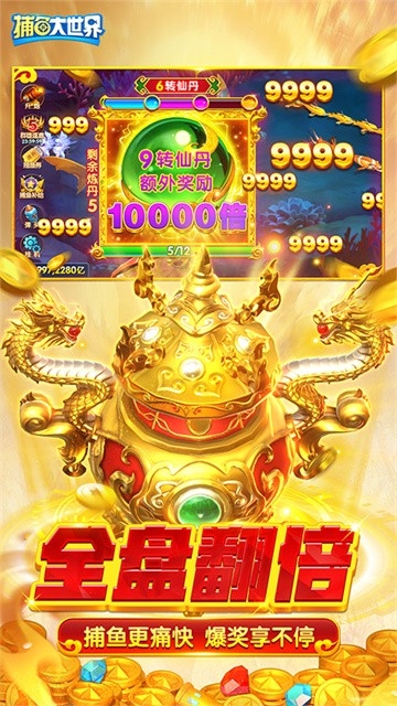 “捕鱼大世界”是一款融合3D视觉效果与经典街机玩法的沉浸式捕鱼游戏。游戏画面精致细腻,海洋生物种类繁多,玩家只需操控炮台瞄准鱼群即可轻松捕获金币,金币还可用于升级炮台,提升捕捉高价值鱼类(如海中霸主)的成功率,带来持续进阶的爽快体验。