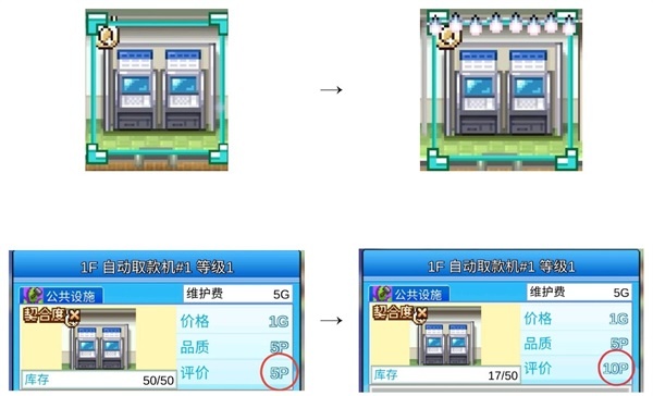 5. 设施加成:设施虽不盈利,但可提升整层店铺评价。同类型设施仅生效一次,建议每层按需配置。