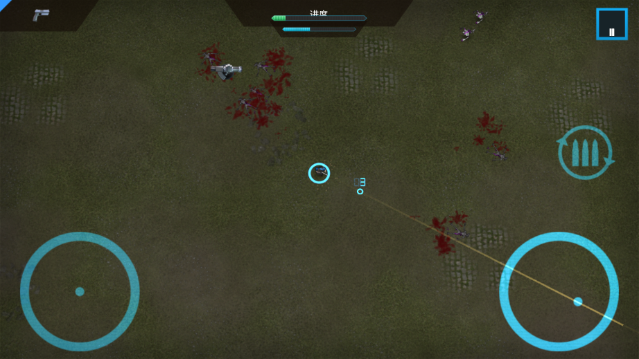 长按右侧攻击按钮会激活蓝色瞄准点,玩家可借此微调射击方向,实现精准锁定,尤其适用于应对高威胁或高速移动的敌人。