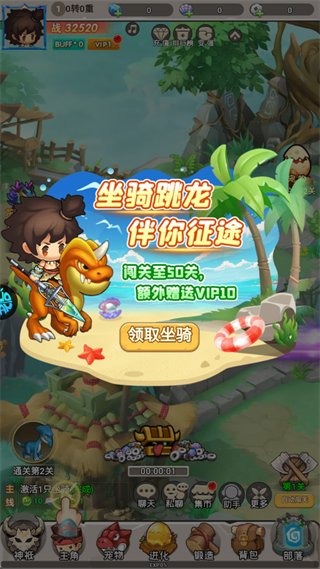 首次登录即送初始坐骑「荒漠跳龙」,闯关至第50关更可直接解锁VIP10,开局即享核心代步工具与高阶成长特权。