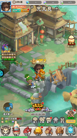完成主线剧情后将开启坐骑进阶功能,并在通关5关时自动获得VIP2,正式迈入角色养成与战力提升的核心阶段。