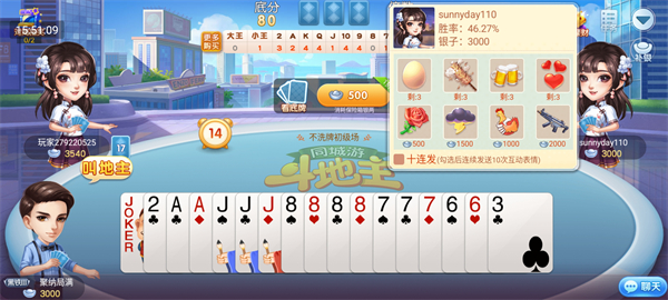 对局中可查看对手胜率、银两余额等信息,并使用互动表情增添趣味,让牌局更具社交乐趣。