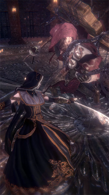 (3)近战三连击包含三种模式:其一是斗篷抓取+剑阵围困,范围小易躲;其二是标准三连(两横扫+一竖劈),节奏稳定,可借第一击绕侧等待竖劈硬直;最危险的是第三种——前两下横扫后接蓄力延迟横扫,因节奏突变极易误判,推荐默数攻击间隔进行闪避,勿过度依赖直觉;
