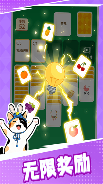 4、时刻关注左侧显示的剩余步数。只有在限定步数内完成全部卡牌分类,才能顺利通关并获得奖励。