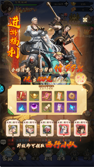 创建角色即可领取海量资源,通关指定剧情章节还能免费获得唐僧、猪八戒等西行小队核心英雄,开局即配齐主力阵容,轻松开启冒险之旅。