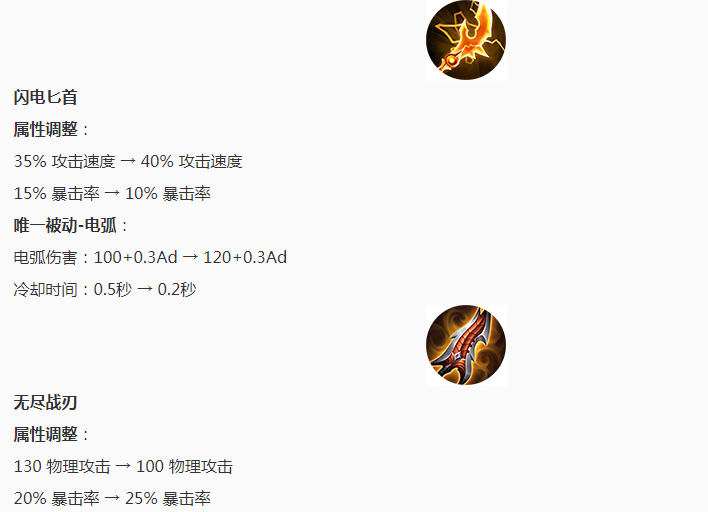 闪电匕首加强:被动伤害增高,被动CD降低。
