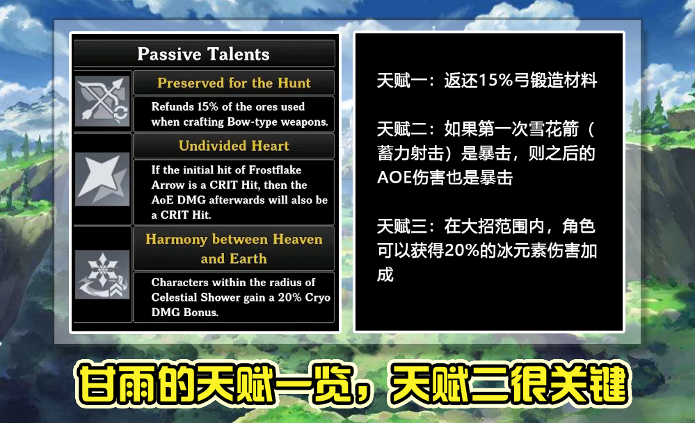甘雨的天赋,天赋一是比较常见的,锻造返还材料,没啥用。