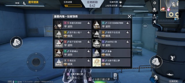 游戏会分为两个阵容,一个是特种兵,一个是内鬼。一共有十名玩家,其中内鬼两名,特种兵八名。